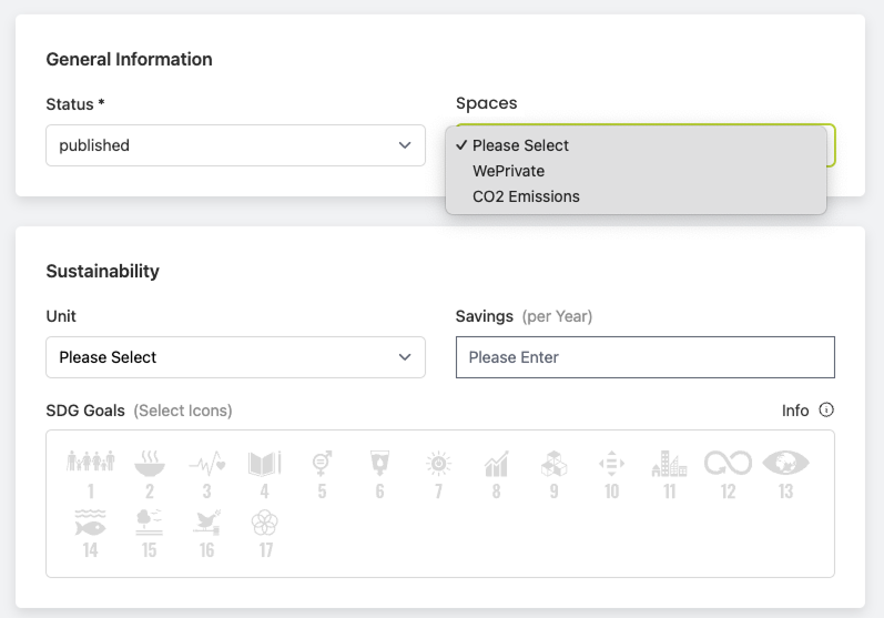 A Company Action Point represents a real action carried out by an organization. This can be, for example, a sustainable canteen, the purchase of green electricity, etc. They therefore offer an ideal opportunity to communicate your organization's sustainable initiatives in a modern, easy-to-understand way and beyond traditional channels such as the sustainability report. Unlike Community Action Points, Company Action Points cannot be adopted by other users.